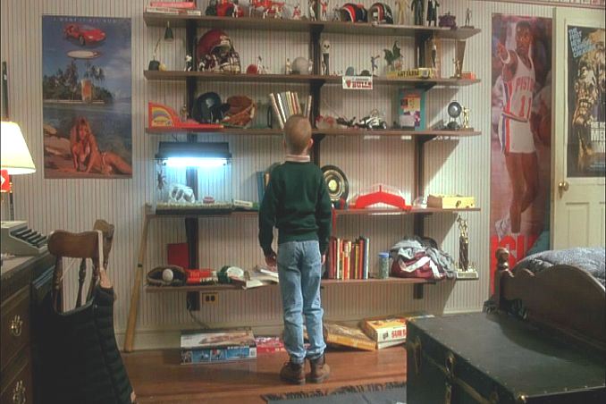 When Kevin was setting up traps for Harry and Marv, I wondered how he managed to find all the things he used, from marbles to mannequins! The Home Alone decor style is all about showing your personality and creating a real, lived-in space for you and your family. Buzz certainly agrees, which is why he has an entire shelf set-up to display his favorite possessions!