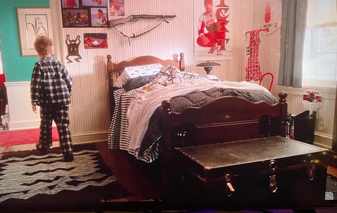 In the attic, where Kevin is exiled, there’s a kid’s bed that has a cute, colorful geometrical print on it. Even in the second part, the bedding in Kevin’s hotel room is a bright green, and none of these bright colors takes away from the coziness of the bed!