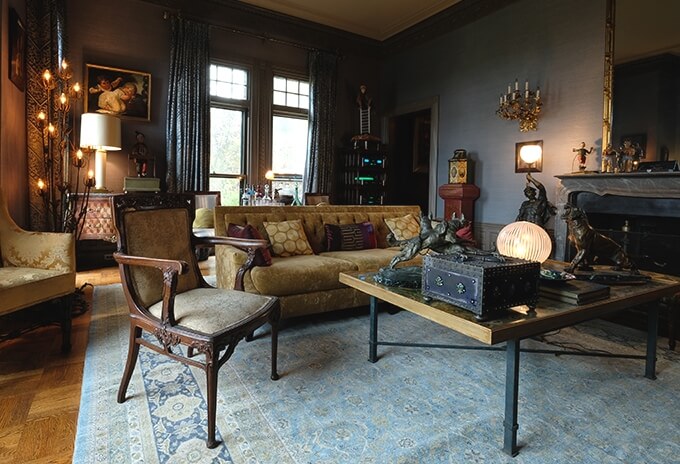 The dollhouse in the main room became quite famous – it’s actually a dollhouse/liquor cabinet. If you have a dollhouse, you could turn it into a display shelf for your precious collections.
