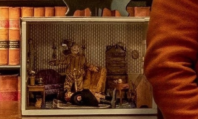 One very interesting thing we see in Harlan’s home is the collection of dioramas and dollhouses. He has arranged the dioramas to showcase crime scenes – yes, it is morbid! But he’s a murder mystery writer, so it’s right up his alley.