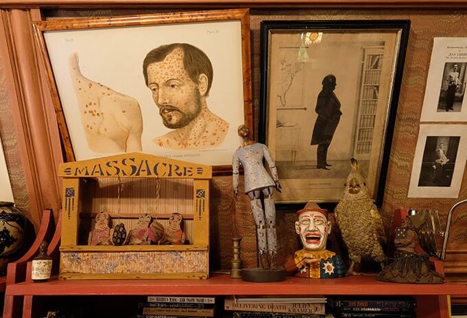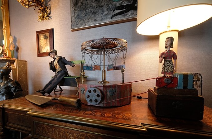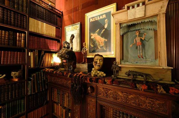 Harlan seems to be a person interested in magic, puppetry and automatons – he was a man of many fancies! As a result, you’ll find vintage magic-themed posters, old-fashioned puppets and puppet theaters, as well as strange-looking mechanical figures.