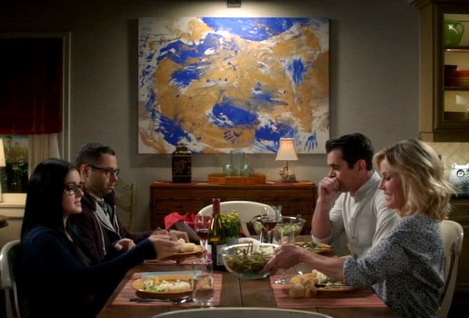 The Modern Family houses have plenty of art, and they’re all unique in their own way. A common theme seems to be abstract art; looks like no one in the family is a great fan of oil paintings or traditional landscapes!