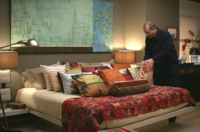 Modern Family shows us that stripes can be used pretty much anywhere in your home – bedding, curtains, cushions, upholstery, rugs, and even dishware! Claire and Phil have a striped jug that appears in many scenes featuring their kitchen.