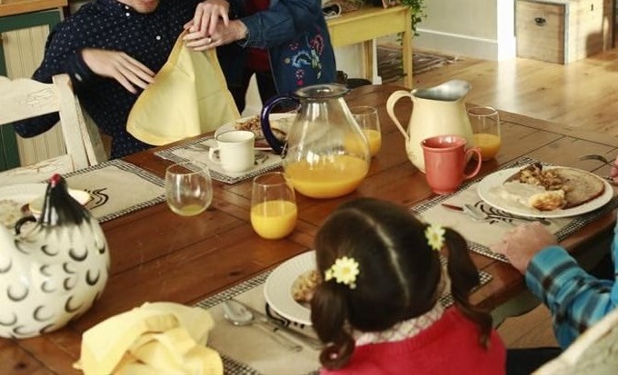 Table runners and mats are an affordable way to perk up your table, and a fun place to add some bright colors or patterns. Throughout the show, we see different kinds of table mats, and they often match with the season or any holiday.