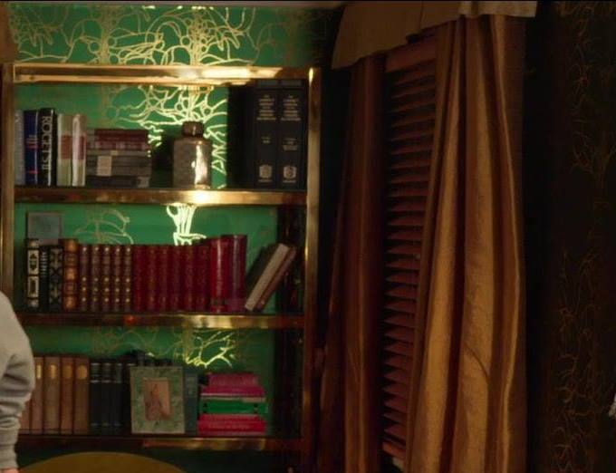 Besides the Hobart mansion, other character’s rooms also have an abundance of wallpaper, especially a gorgeous gold and green foiled wallpaper in Astrid’s bedroom. The wallpaper patterns absolutely jump off the wall – nothing boring in these rooms!