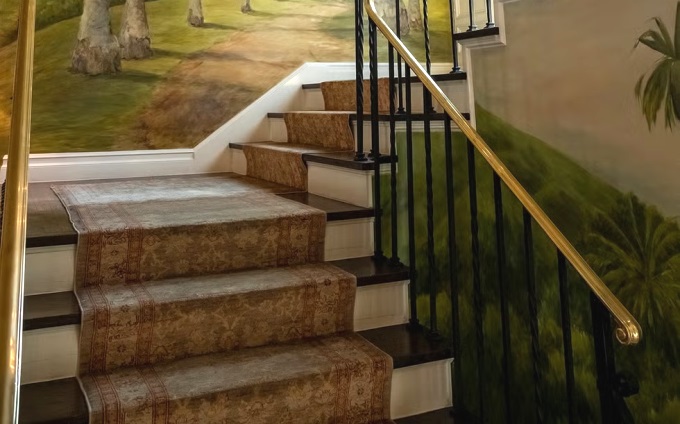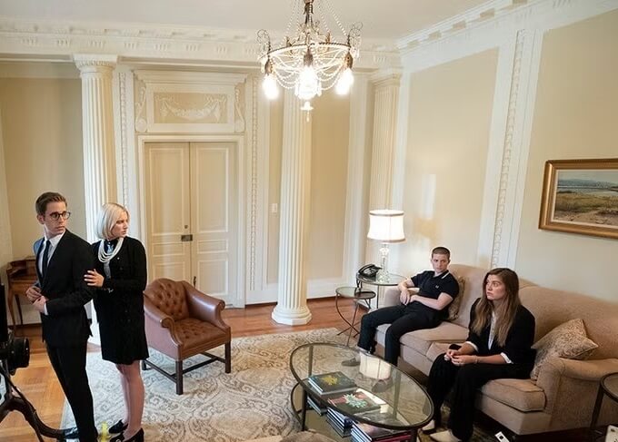 The Hobarts live in Hobart mansion, a palatial home whose interiors are just as impressive as the exterior and whose rooms are every bit deserving of a future President! The high walls of the common areas and even the walls in the rooms are covered in gorgeous custom-designed wallpaper that looks super-expensive!