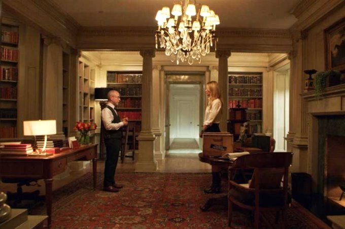 The Hobarts seem like they’re old money people, which means their mansion is a historic structure. It’s natural, then, that they’d have lots of intricate carved details, along with architectural features like pillars, panelling, high ceilings and more. You can see these throughout the show, on fireplaces, doors, walls and furniture.