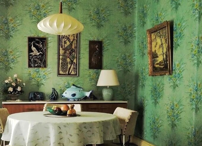 The fifties and sixties certainly loved their wallpapers, as did the makers of The Queen’s Gambit! The wallpapers completely cover the walls, making them an integral part of the mood of the space. This kind of wallpaper use is called the ‘grandmillenial’ style – it’s not for everyone!