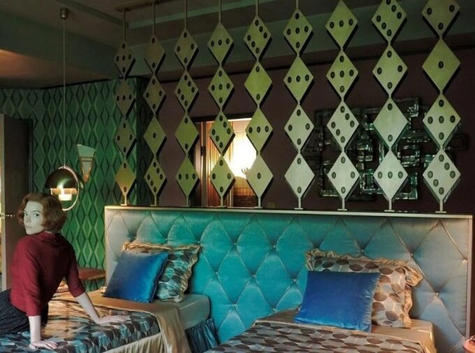 So why are we talking about decor ideas in a movie about chess? Well, that’s because production designer Uli Hanisch has beautifully created sets that reflect every phase of Beth’s life – her adoptive home, the various hotels she lives in and the championship venues.