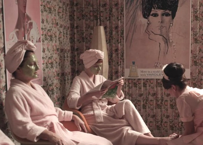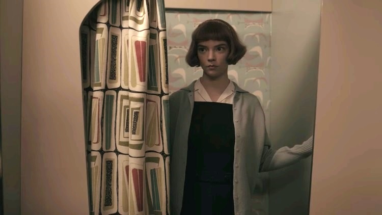 The Art Deco style was quite popular during the fifties and sixties in America, and a popular theme in this style was geometric patterns. These are particularly visible in the parts of the series when Beth is attending matches in Vegas.