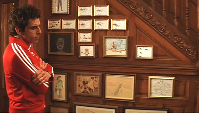 Wes Anderson worked with production designer David Wasco to decorate the Tenenbaums’ family home in Hollywood Regency style. You’ll see lots of stained glass windows, ornamental details, moulding and dark woods. Anderson has set up the house to look like a dollhouse, where each character’s room is a little world of its own, disconnected from the others. It’s a wonderful representation of how disconnected the family members are, and we’ll find more cool symbolism as we go!