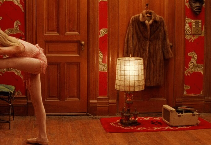 One of the first things you’ll notice when you watch the movie is the bright flamingo pink on the walls of the Tenenbaums’ home. This color became so popular that it began to be referred to as ‘Wes Anderson Pink’! Pink is a color of childhood and of innocence, and it represents the characters’ return to their childhood home.